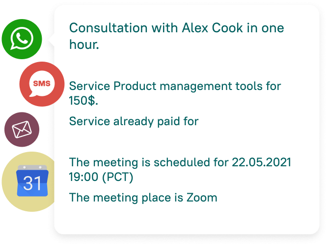 Вы и ваш клиент получаете WhatsApp - уведомления о предстоящей встрече